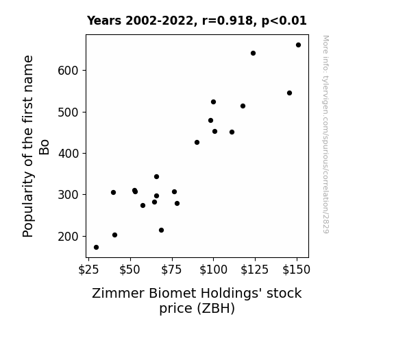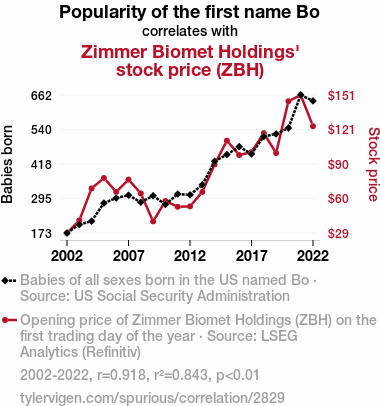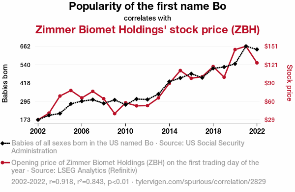 - The spurious research paper: Bo Knows Stocks: The Bo Name Popularity and Zimmer Biomet Holdings' Stock Price
