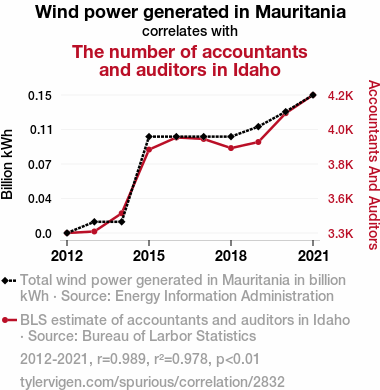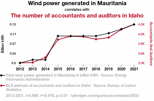 - The spurious research paper: Blown Away: Uncovering the Zephyrous Link Between Mauritanian Wind Power and Idaho's Accounting Population