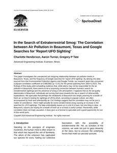 In the Search of Extraterrestrial Smog: The Correlation between Air Pollution in Beaumont, Texas and Google Searches for 'Report UFO Sighting' Journal of Unconventional Extraterrestrial Studies Jan 2024 Reminder: This paper is AI-generated. Not real! |