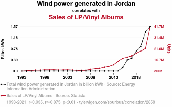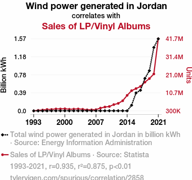- The spurious research paper: Blowin' in the Wind: A Statistical Analysis of the Relationship Between Jordanian Wind Power and LP/Vinyl Album Sales