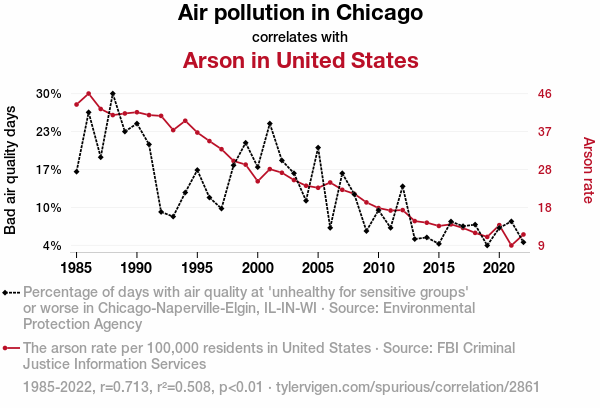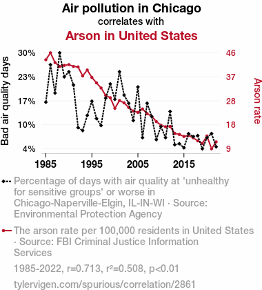 - The spurious research paper: Up in Smoke: The Connection Between Air Pollution in the Windy City and Arsons Across the Nation