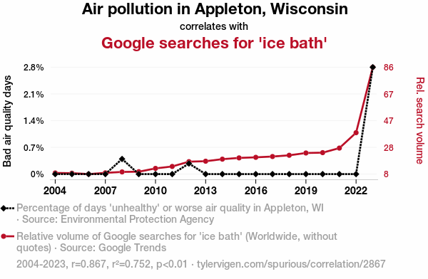 User prompt: Please make up a funny explanation for how an increase in Air pollution in Appleton, Wisconsin caused ice bath (Google searches for 'ice bath') to increase. Include one good pun.