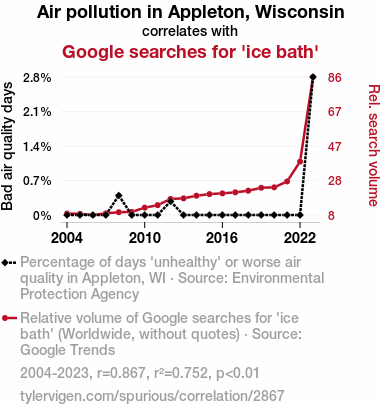 As the world becomes increasingly connected through the power of the internet, people often turn to search engines to seek guidance, solace, and sometimes just to satisfy their curiosity. However, the motivations behind these searches can be as mysterious as understanding why anyone would voluntarily make snow angels in freezing temperatures. Our study aims to uncover the icy puzzle of why residents of Appleton, Wisconsin, have shown a notable fascination with the concept of 'ice baths' in correlation with their local air pollution levels.