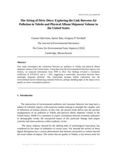 The Airing of Dirty Discs: Exploring the Link Between Air Pollution in Toledo and Physical Album Shipment Volume in the United States