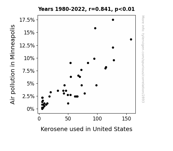 This paper investigates the link between air pollution levels in Minneapolis and kerosene usage in the United States over the span of 1980 to 2022, utilizing data from the Environmental Protection Agency and the Energy Information Administration. Our analysis reveals a striking correlation coefficient of 0.8414787 and p < 0.01, indicating a robust connection between these two variables.