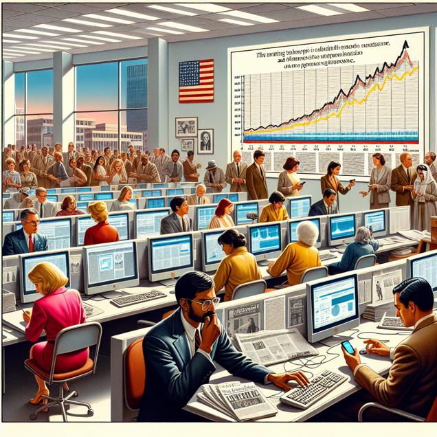 Prompt: Generate an image in the style of a TIME magazine cover, depicting a bustling office scene in New Mexico. In the foreground, show a team of statisticians engrossed in data analysis, surrounded by computer screens displaying intricate graphs and charts. Outside the office, depict a group of individuals eagerly gathered around a smartphone, fervently typing "do vaccines work" into the Google search bar. In the background, include a wall poster showcasing a graph with a distinct downward trend from "vaccinated" to "belief in alien abductions." Ensure the image conveys the complex interplay between data analysis, public curiosity, and societal trends. The depiction should include only scenes, people, and objects, it should not include text or speech bubbles.