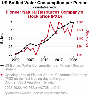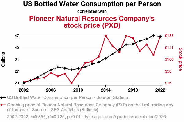 stock market, bottled water consumption, Pioneer Natural Resources Company, correlation, economic research, market influences, stock performance, data analysis, market correlation, consumer behavior, investment trends
