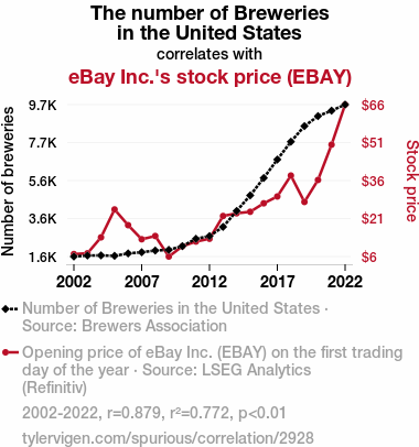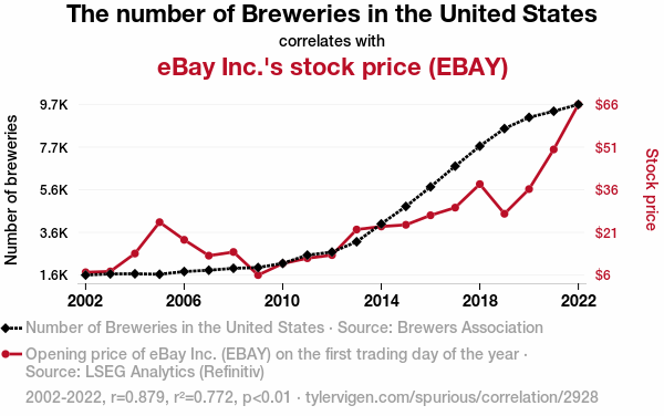 - The spurious research paper: Brews and Bulls: A Sudsy Relationship Between Brewery Numbers and eBay Inc.'s Stock Price