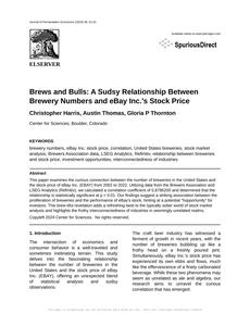 User prompt: Please provide potential search keywords for a paper titled Brews and Bulls: A Sudsy Relationship Between Brewery Numbers and eBay Inc.'s Stock Price with an abstract of This paper examines the curious connection between the number of breweries in the United States and the stock price of eBay Inc. (EBAY) from 2002 to 2022. Utilizing data from the Brewers Association and LSEG Analytics (Refinitiv), we calculated a correlation coefficient of 0.8786200 and determined that the relationship is statistically significant at p < 0.01. Our findings suggest a striking association between the proliferation of breweries and the performance of eBay's stock, hinting at a potential "hopportunity" for investors. This brew-tiful revelation adds a refreshing twist to the typically sober world of stock market analysis and highlights the frothy interconnectedness of industries in seemingly unrelated realms.