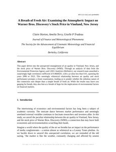 A Breath of Fresh Air: Examining the Atmospheric Impact on Warner Bros. Discovery's Stock Price in Vineland, New Jersey Journal of Finance and Meteorological Phenomena Jan 2024 Reminder: This paper is AI-generated. Not real! |