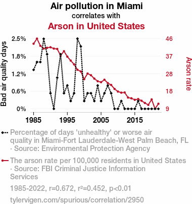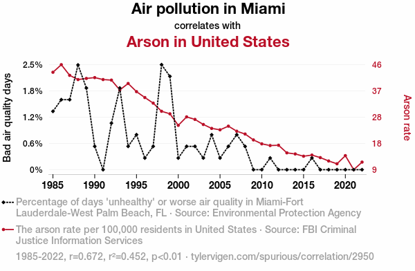 - The spurious research paper: Blowing Smoke: The Hot Relationship Between Air Pollution in Miami and Arson in the United States