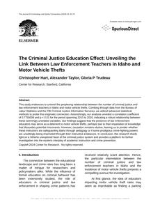 The Criminal Justice Education Effect: Unveiling the Link Between Law Enforcement Teachers in Idaho and Motor Vehicle Thefts The Journal of Criminology and Quirky Connections Jan 2024 Reminder: This paper is AI-generated. Not real! |