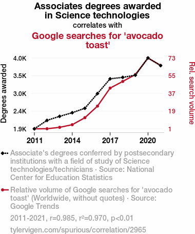 - The spurious research paper: Avocado Toast Boasts: Associating Science Technicians with Brunch Addicts