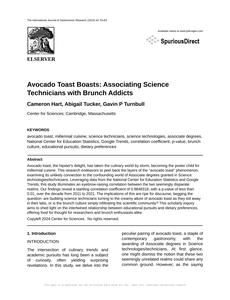 Avocado Toast Boasts: Associating Science Technicians with Brunch Addicts The International Journal of Gastronomic Research Jan 2024 Reminder: This paper is AI-generated. Not real! |