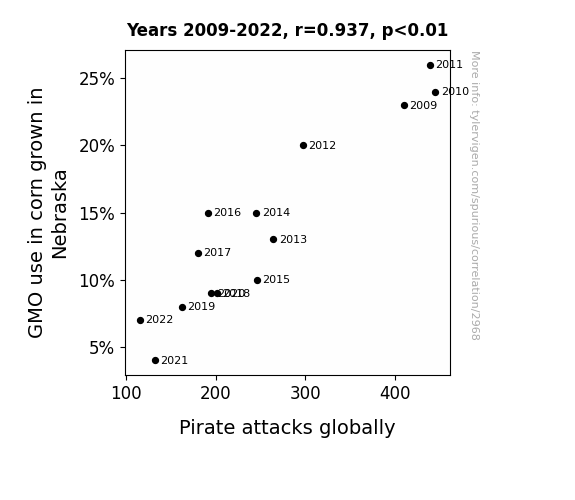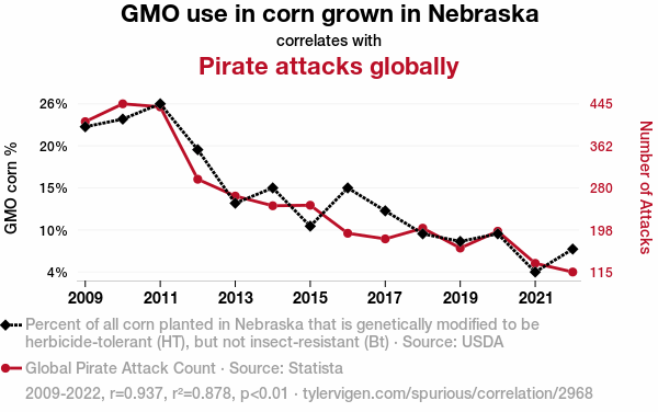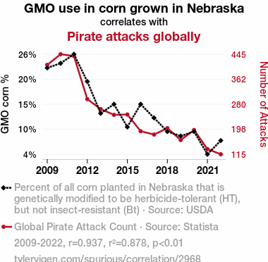 - The spurious research paper: Corn GMOs in Nebraska and Global Pirates: A Corny Connection or Just a Kernel of Truth?