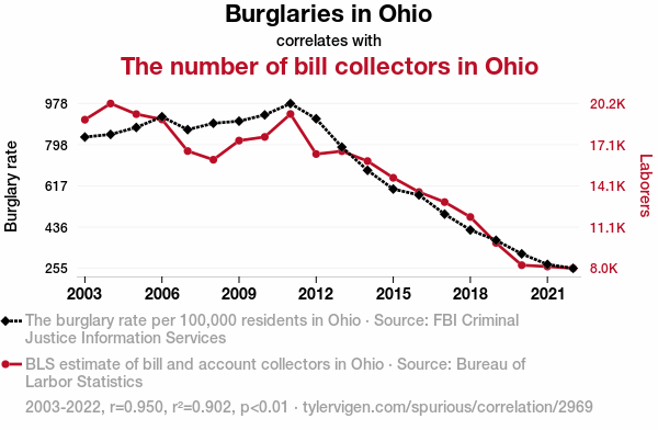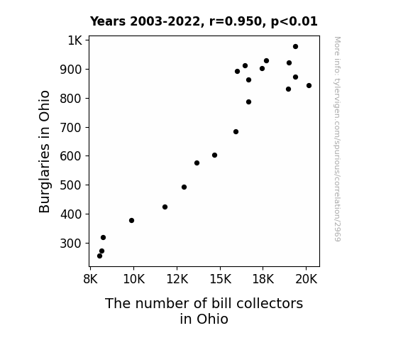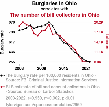 - The spurious research paper: The Debt Collector's Dilemma: Exploring the Correlation Between Burglaries and Bill Collectors in Ohio