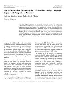 Lost in Translation: Unraveling the Link Between Foreign Language Degrees and Burglaries in Arkansas The Journal of Linguistic Crime Studies Jan 2024 Reminder: This paper is AI-generated. Not real! |