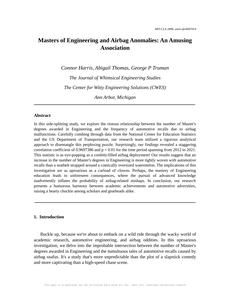 Masters of Engineering, airbag anomalies, automotive recalls, Master's degrees in Engineering, correlation coefficient, National Center for Education Statistics, US Department of Transportation, automotive mishaps, academic achievements, engineering education, airbag malfunctions, research analysis, humor in research