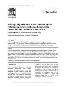 Shining a Light on Solar Power: Illuminating the Relationship Between Albanian Solar Energy Generation and Lululemon's Stock Price Journal of Solar Energy Economics and Fashion Finance Jan 2024 |