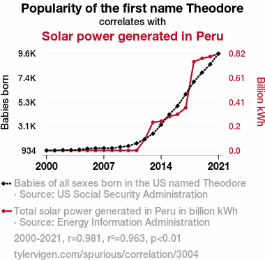 - The spurious research paper: The Theodore Trend: Tracing the Ties between Theodore's Popularity and Peru's Solar Power Production