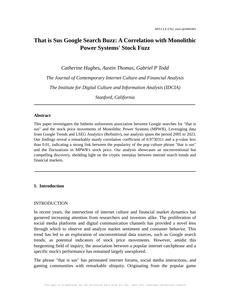 That is Sus Google Search Buzz: A Correlation with Monolithic Power Systems' Stock Fuzz The Journal of Contemporary Internet Culture and Financial Analysis Jan 2024 Reminder: This paper is AI-generated. Not real! |