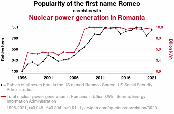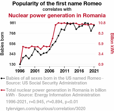 - The spurious research paper: Romeo Reactors: Exploring the Correlation Between Name Popularity and Nuclear Power Generation in Romania