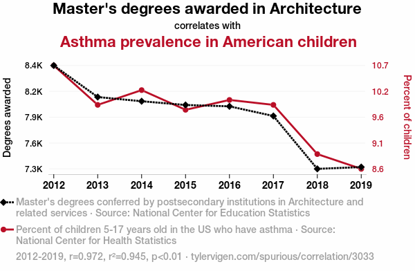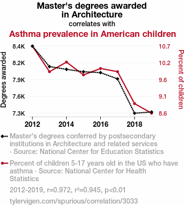 Master's degrees in Architecture, asthma prevalence in American children, National Center for Education Statistics, National Center for Health Statistics, correlation between architecture degrees and childhood asthma, built environment and respiratory health, design and public health intersections