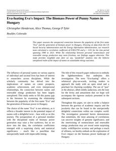 Throughout this paper, we aim to strike a balance between the gravitas of academic inquiry and the jocularity that can be found in the unexpectedly delightful connections within our complex world. The investigation presented herein demonstrates that sometimes, the most amusing of correlations can uncover insights of genuine significance, and the intertwining of nomenclature and renewable energy production may yet reveal some surprising truths. withObjective scrutiny and perhaps a touch of silliness, we hereby embark on the exploration of Eva's impact on the biomass power landscape of Hungary.