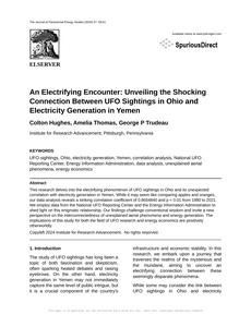 An Electrifying Encounter: Unveiling the Shocking Connection Between UFO Sightings in Ohio and Electricity Generation in Yemen The Journal of Paranormal Energy Studies Jan 2024 Reminder: This paper is AI-generated. Not real! |