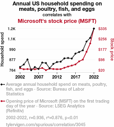 - The spurious research paper: Meat the Market: A Beefy Analysis of Annual US Household Spending on Protein and its Impact on Microsoft's Stock Price