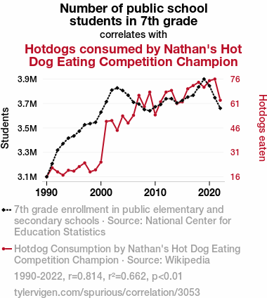 - The spurious research paper: The Seventh Grade Sausage Saga: A Statistical Study of Student Numbers and Sausage Consumption