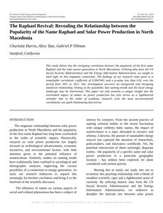 The Raphael Revival: Revealing the Relationship between the Popularity of the Name Raphael and Solar Power Production in North Macedonia The Journal of Solar Energy and Sociolinguistics Jan 2024 Reminder: This paper is AI-generated. Not real! |