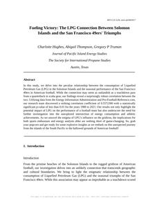 Please draft the title and abstract of an academic research paper presenting the findings of the connection between Liquefied petroleum gas used in Solomon Islands and Season wins for the San Francisco 49ers. Make lots of jokes, goofy observations, and puns.