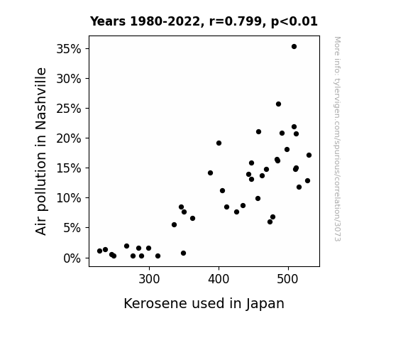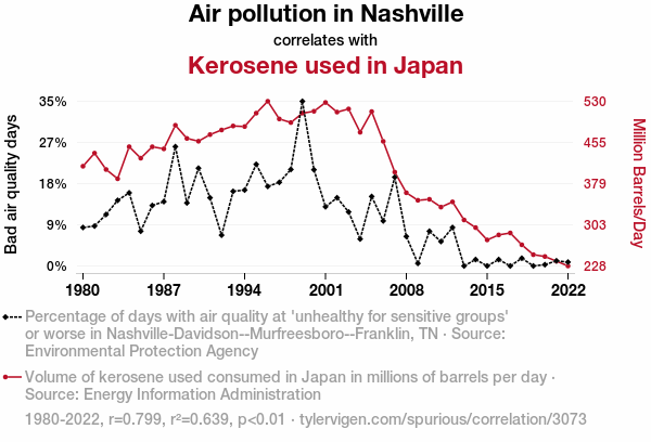 - The spurious research paper: The Gasp of the Rising Sun: Investigating the Relationship Between Air Pollution in Nashville and Kerosene Consumption in Japan