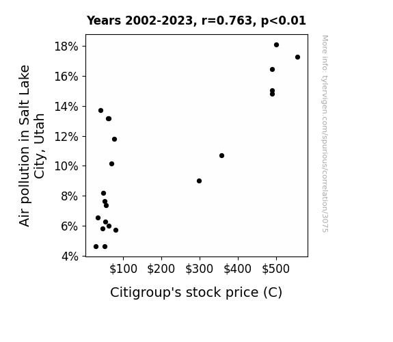 In this study, we explore the intriguing connection between air pollution levels in Salt Lake City, Utah and the stock price of Citigroup (C). By utilizing data from the Environmental Protection Agency and LSEG Analytics (Refinitiv), we uncovered a correlation coefficient of 0.7633482 and p < 0.01 for the period of 2002 to 2023. Our findings indicate a statistically significant relationship between these seemingly unrelated variables, shedding light on the impact of air quality on financial markets. This research offers a breath of fresh air in the bustling world of economic analysis and shows that even the most unexpected factors can influence stock prices – sometimes, the market truly is just a haze of surprises.