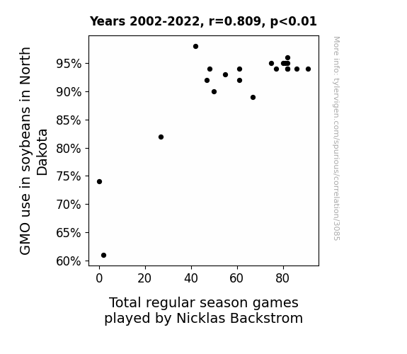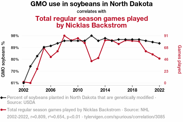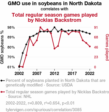 - The spurious research paper: The Soybean Score: Exploring the Interplay Between GMO Use in North Dakota and Nicklas Backstrom's NHL Stint