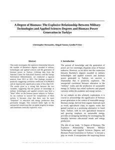 A Degree of Biomass: The Explosive Relationship Between Military Technologies and Applied Sciences Degrees and Biomass Power Generation in Turkiye The Journal of Interdisciplinary Military Technologies and Renewable Energy Studies Jan 2024 Reminder: This paper is AI-generated. Not real! |