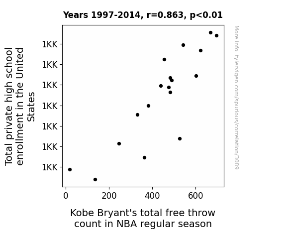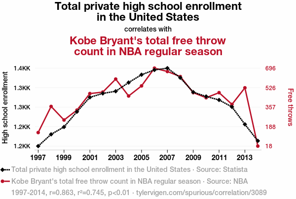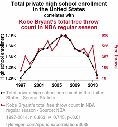 - The spurious research paper: The Ties between Total private high school enrollment in the United States and Total free throw count of the Tenacious Kobe Bryant in NBA regular seasons: A Tantalizing Tidbit