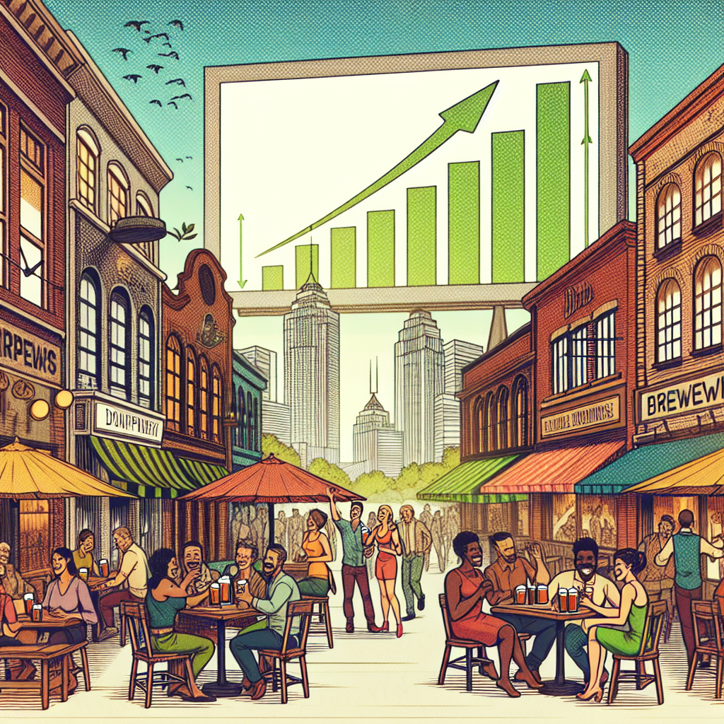 ChatGPT: Imagine a bustling city street filled with numerous breweries, each with their distinct brewery signs and outdoor seating areas. People are seen enjoying beers, laughing, and socializing. In the background, a soaring stock graph of CoStar Group's stock price is displayed on a large digital billboard, with bright green arrows pointing upwards. The scene captures the lively atmosphere of the breweries and the growing demand for larger office spaces, as indicated by the rising stock price of CoStar Group.