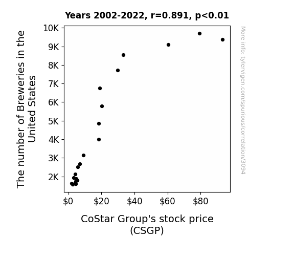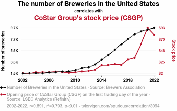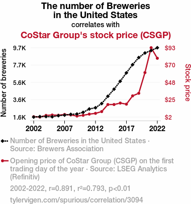 - The spurious research paper: Foam and Finance: A Sudsy Connection Between Breweries and CoStar Group's Stock Price