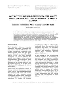 Out of This World Popularity: The Wyatt Phenomenon and UFO Sightings in North Dakota The Journal of Extraterrestrial Encounters and Sociological Phenomena Jan 2024 Reminder: This paper is AI-generated. Not real! |