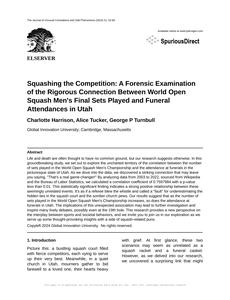 User prompt: Please provide potential search keywords for a paper titled Squashing the Competition: A Forensic Examination of the Rigorous Connection Between World Open Squash Men's Final Sets Played and Funeral Attendances in Utah with an abstract of Life and death are often thought to have no common ground, but our research suggests otherwise. In this groundbreaking study, we set out to explore the uncharted territory of the correlation between the number of sets played in the World Open Squash Men's Championship and the attendance at funerals in the picturesque state of Utah. As we dove into the data, we discovered a striking connection that may leave you saying, "That's a real game-changer!"