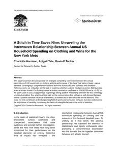 User prompt: Please provide potential search keywords for a paper titled A Stitch in Time Saves Nine: Unraveling the Interwoven Relationship Between Annual US Household Spending on Clothing and Wins for the New York Mets with an abstract of This paper examines the unexpected yet strangely compelling connection between the annual expenditure of US households on clothing and the performance of the New York Mets in Major League Baseball. Leveraging a comprehensive dataset from the Bureau of Labor Statistics and Baseball-Reference.com, we embarked on the task of exploring whether sartorial indulgence and on-field success share a hidden thread. Our findings reveal a striking correlation coefficient of 0.8430259 and p < 0.01 for the years 2000 to 2022, suggesting a surprisingly strong positive relationship between the two seemingly unrelated variables. Our analysis sheds light on the curious notion that perhaps a well-dressed fanbase exerts a positive sartorial influence on the Mets, as evidenced by their victories on the diamond. This study not only contributes to the burgeoning field of sports and consumer behavior, but also underscores the importance of carefully considering the fabric of intangible factors in the world of statistics.