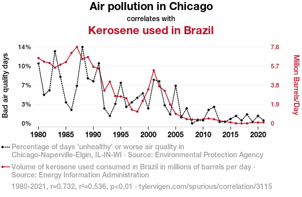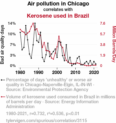 - The spurious research paper: Smoke Signals: The Correlation between Air Pollution in the Windy City and Kerosene Consumption in the Land of Samba