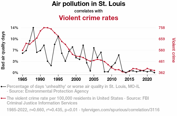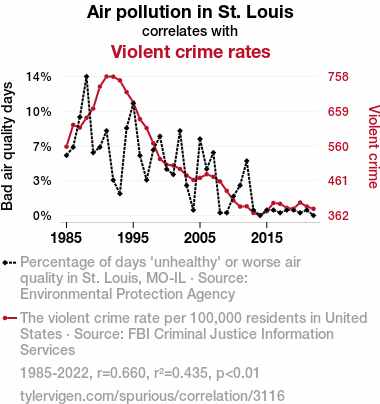 - The spurious research paper: The Hazy Connection: Air Pollution and Violent Crime Rates in St. Louis