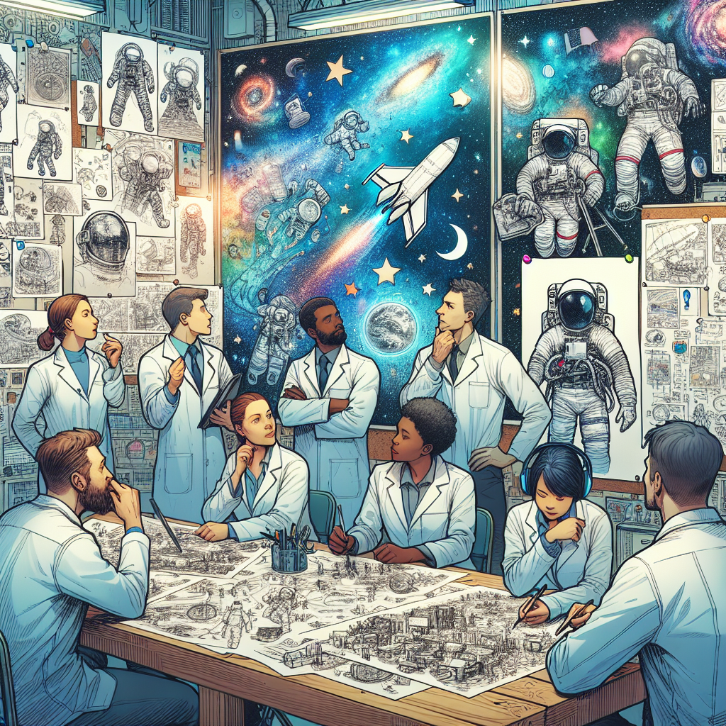 Prompt: [ An image that looks like it is a scene from a Pixar movie ] Show avionics technicians bustling in a workshop in Alaska, surrounded by advanced flight instruments. The background features a bulletin board adorned with xkcd comics featuring astronauts and galaxies, demonstrating the growing fascination with outer space. The technicians are engaged in lively discussions about cosmic concepts, with a new xkcd comic about a space mission being pinned up, symbolizing the surging interest in cosmic knowledge. The depiction should include only scenes, people, and objects, it should not include text or speech bubbles.