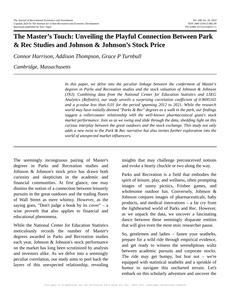 The Master’s Touch: Unveiling the Playful Connection Between Park & Rec Studies and Johnson & Johnson’s Stock Price The Journal of Recreational Economics and Investments Jan 2024 Reminder: This paper is AI-generated. Not real! |