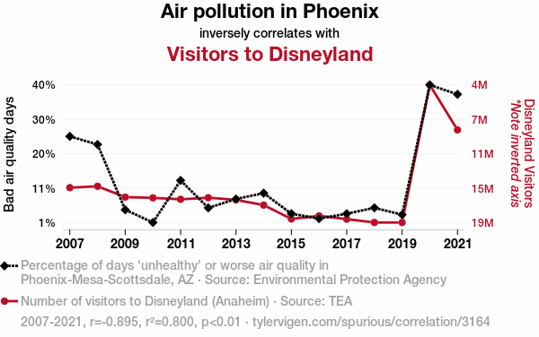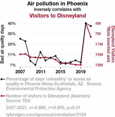 - The spurious research paper: Clear Skies, Mickey Ears: Investigating the Impact of Phoenix Air Pollution on Disneyland Visitors