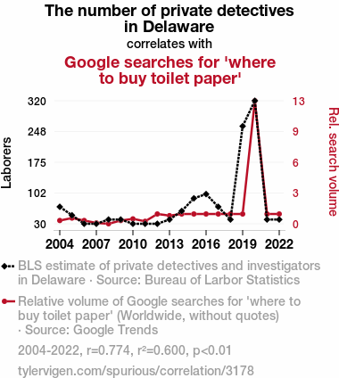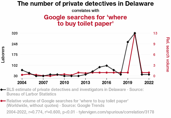 The Surveillance of Sudden Spikes: A Statistical Examination of the Relationship Between Private Detectives in Delaware and Google Searches for 'Where to Buy Toilet Paper'