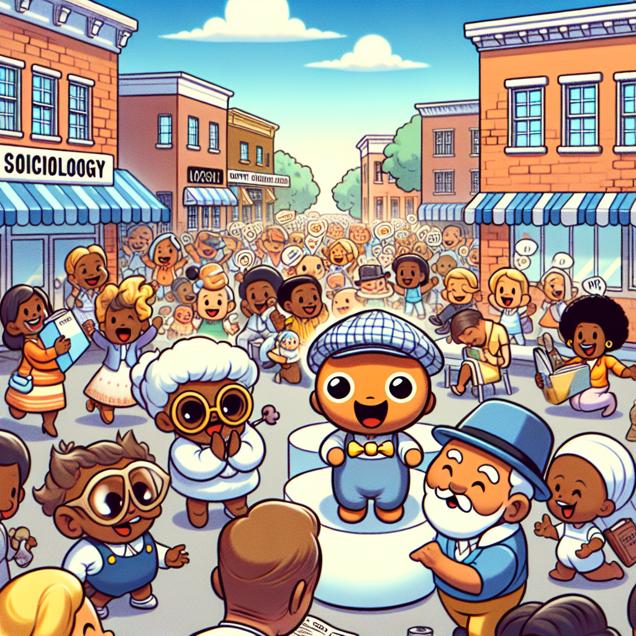 ChatGPT: Generate an image of a vibrant North Carolina town with adorable, cheerful cartoon characters filling the streets. Show cute newborns with tiny "Billie" name tags, being lovingly cooed over by proud parents. Illustrate a local college bustling with enthusiastic cartoon students studying sociology, with books, notes, and excitement in the air. The scene should exude a sense of inspiration and influence, capturing the lively atmosphere of a community embracing the legacy of Billie Holiday and the growing interest in sociology.
